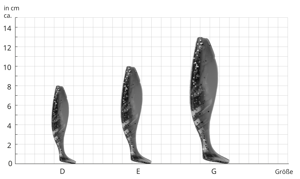 Größe des Gummifisches in cm ( ca.-Angaben): 10
