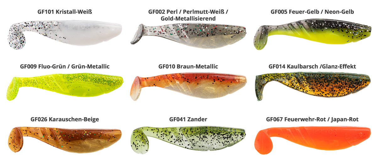 Gummifische gibt es unzählige. Der RIPTOR von Profi-Blinker stellt aber hier eine Ausnahme dar. Die verwendete Gummimischung ist in jahrelanger Entwicklung und mit vielen Erfahrungstests ausgewählt und speziell für Profi-Blinker zusammengestellt worden. Wer einmal einen RIPTOR berührt und mit ihm gefischt hat, der wird verstehen, weshalb er so genial ist. Viele Hersteller verwenden hier Weichmacher und billiges Silikon. Öffnet man solche Kunstköderverpackungen weht einem die Chemiekeule um die Nase. Ganz anders beim dem Profi-Blinker-RIPTOR. Ein spezielle Ölmischung schützt den Körper des Kunstköders. Man möchte ja ein köderfischähnliches Gefühl und Verhalten für den Zielfisch erreichen. Damit ist der RIPTOR im trockenen Zustand leicht klebrig. Das Öl verhindert beim Lagern und Transport, auch in Ihrer Angeltasche die Beschädigung durch Verklebung. Der verwendete Schutzfilm ist natürlich umweltfreundlich. Die Gussformen und damit die Formgebung ist auch ein weiteres Alleinstellungsmerkmal. Im Vergleich zu preiswerteren Plagiaten sind die Riptoren von Profi-Blinker als absolut hochwertig einzuschätzen. Dies ist der Grund für die perfekten Laufeigenschaften und diese sind maßgeblich für die hohe Fängigkeit. Die umfangreichen Farb- und Modellvarianten sind ein weiterer Punkt. Möchten Sie es auffällig - für trübe stehende Gewässer oder dezent - bei Profi-Blinker haben Sie die Wahl. Auch Imitation von reellen Fischfarben sind erhältlich. Barsch, Kaulbarsch, Zander, Schleie, Bach- und Regenbogenforelle sind hier zu nennen.