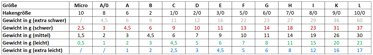 Durch die eingravierten Buchstaben- und Farbcodierung der Twister-Köpfe wird das Nachkaufen wesentlich vereinfacht. Hakengröße und Gewicht muss man nicht mehr kennen.